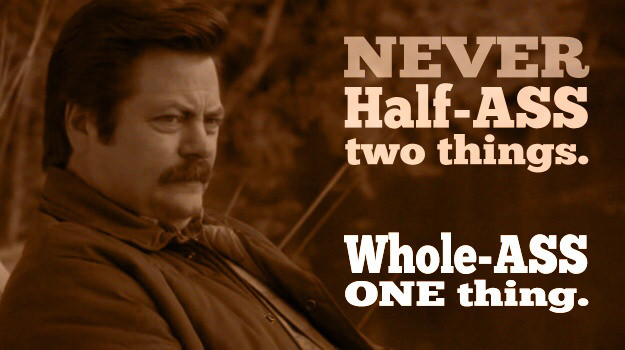 One thing I've realized in recent years is that the biggest, most consistent practice I have in my life is my actual job. It's obvious in retrospect, but when you're trying to establish a creative practice a 9-5 is a big hulking monolith soaking up time and energy. In reality though, it's a practice unto itself—an extremely consistent one at that. And since my job is basically sitting, thinking hard, and typing things into a computer, trying to build a practice around an activity that involves more of the same very much feels like double-dipping. It's the exact problem I ran into this year trying to stand up a game studio. No matter how much inspiration you bring to something, if that something involves 4-6 hours of programming and game design after working 8+ hours in tech, something will give. In the immortal words of Ron Swanson: